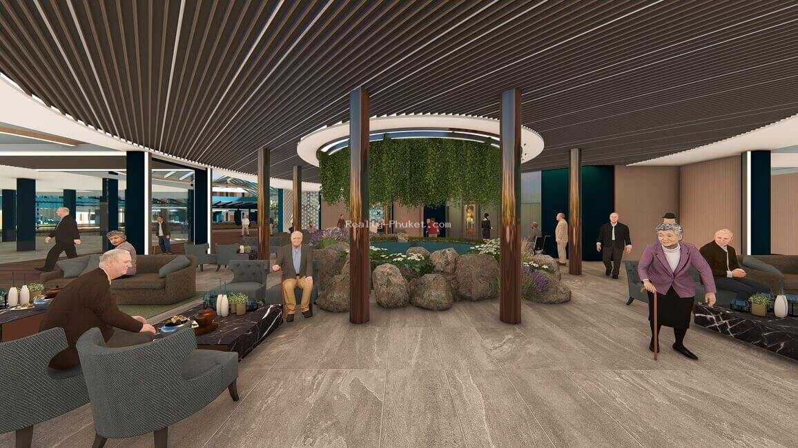 Комплекс оснащен: круглосуточным медицинским центром с услугами неотложной помощи, стоматологией и психологической поддержкой, гидротерапевтическим бассейном, парной и массажными кабинетами. Йога-студия, фитнес-зал с индивидуальными тренировками и реабилитацией, читальный зал, творческие мастерские и зоны игр. Рестораны с тайской, итальянской и европейской кухней, крышный Sky Bar, кафе, лаунджи и винный погребок. Амфитеатр и многофункциональный холл, тропический парк с прогулочными аллеями и беговыми маршрутами.
