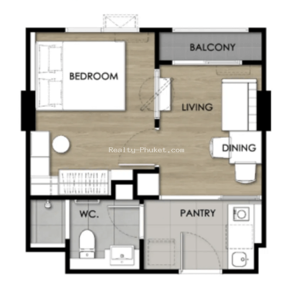 1-комнатная квартира в Escent Phuket, Пхукет, Таиланд, 28 м2