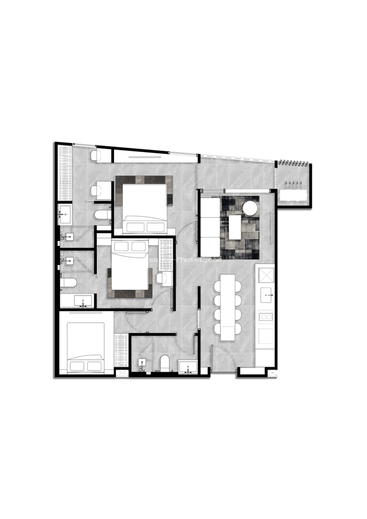 3-комнатная квартира в Citygate de Phuket, Пхукет, Таиланд, 81 м2 на карте