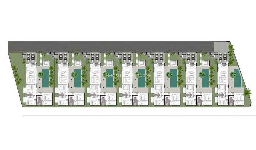 Проект включает 7 вилл в современном тропическом стиле, размещённых на участке площадью 4800 м². Строительство было завершено в марте 2026 года.