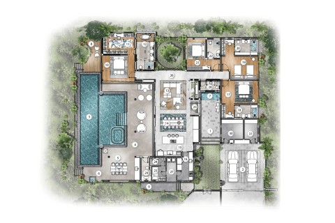 - Приватность и комфорт: Ландшафтные сады с шезлонгами и салами для открытых обедов, идеально для релаксации в тропическом климате.