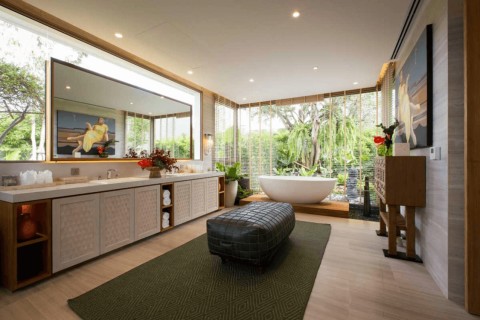 - Концепция: Тропический минимализм с экологичными материалами, включая тайский тик и импортный камень.