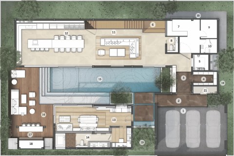 Планировки включают супер виллы типа А с пятью спальнями и пятью ванными, площадью до 897 квадратных метров, а также стандартные виллы типа B с тремя спальнями и ванными, от 271 м2. Комплекс вилл ориентирован на инвесторов, предлагая юридическую защиту через долгосрочную аренду на 90 лет для нерезидентов, с прогнозируемым доходом от сдачи в аренду на уровне 6% ежегодно.