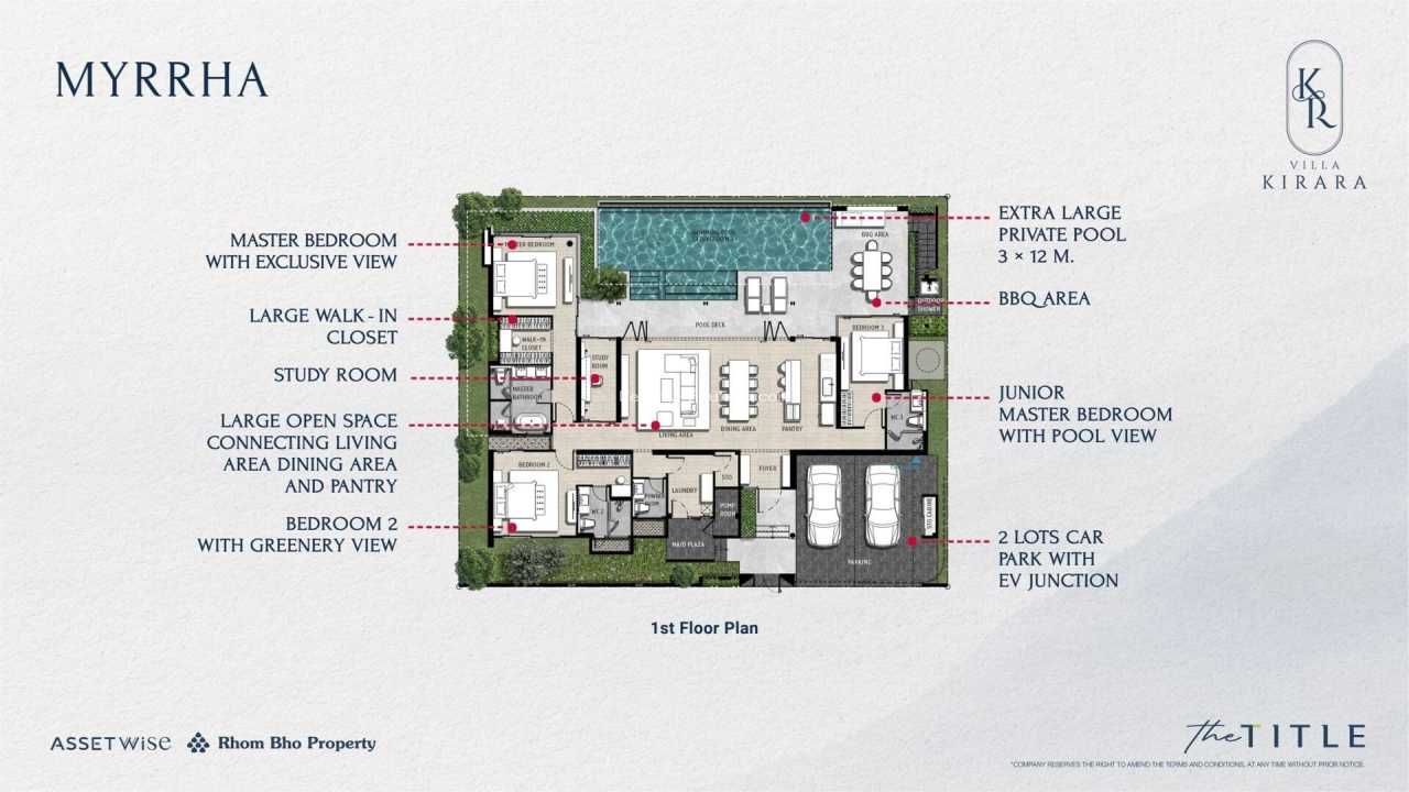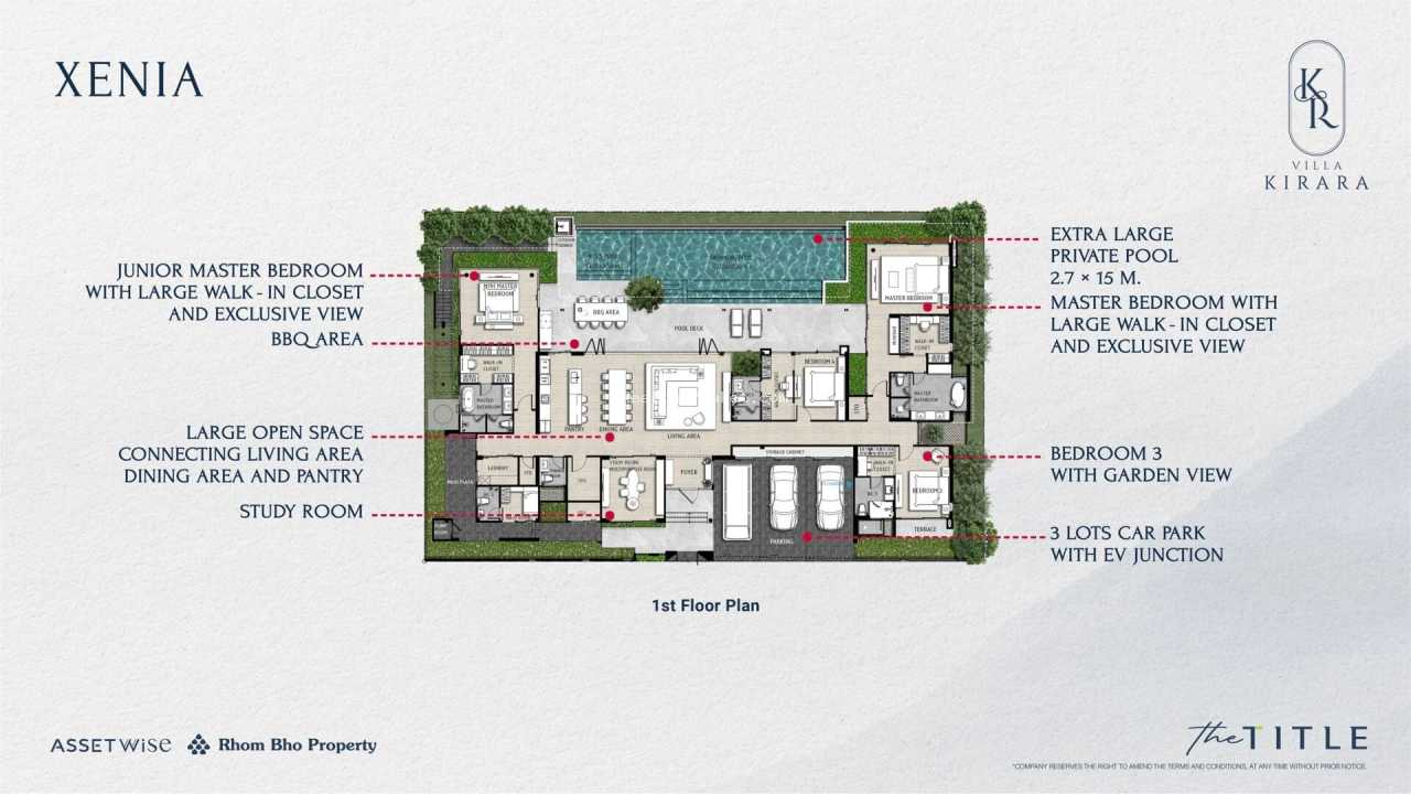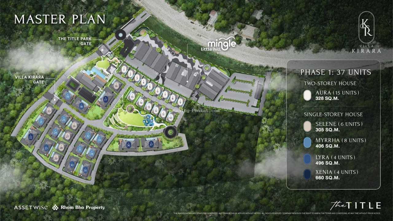 Жилой ансамбль The Title Villa Kirara воплощает роскошь высшего уровня на территории острова Пхукет, созданный компанией Rhom Bho Property. Он объединяет 85 элитных резиденций, где каждая оснащена персональным водоемом, предлагая варианты от двух до четырех спальных комнат. Площади помещений варьируются между 182 и 660 кв. м, с потолками, достигающими шести метров в просторных моделях. Стиль строительства гармонично смешивает тропические мотивы с современными решениями, включая широкие стеклянные поверхности, органично вписываясь в окружающую природу.