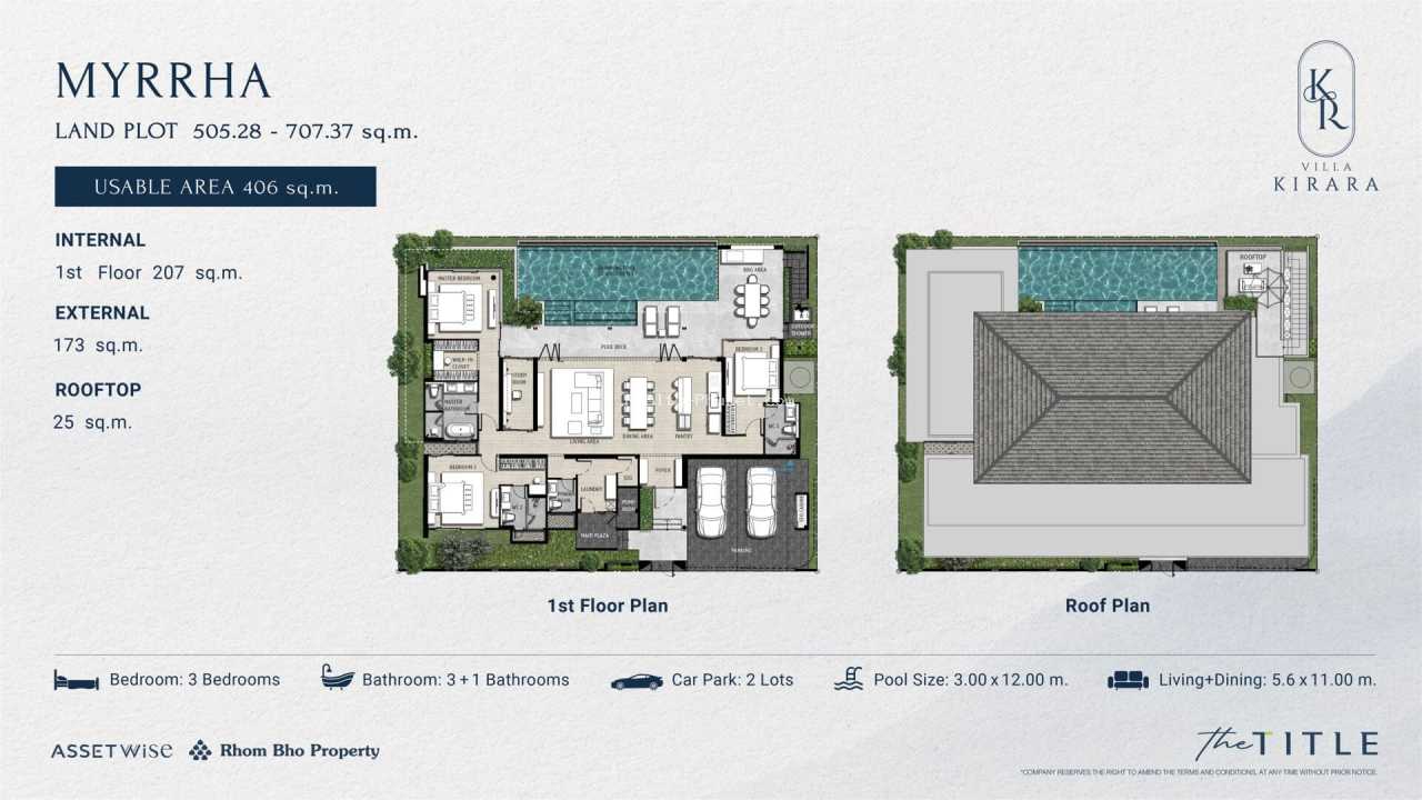 - Категория Myrrha: 3 спальные комнаты, 3+1 санузла, бассейн 3×12.