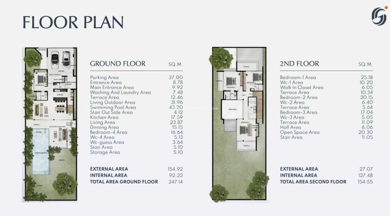 - Продуманная планировка вилл с просторными жилыми зонами и отдельными хозяйственными помещениями.