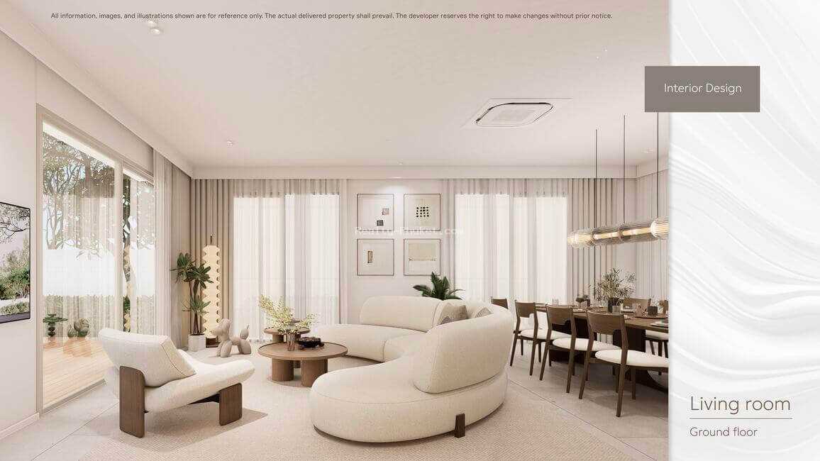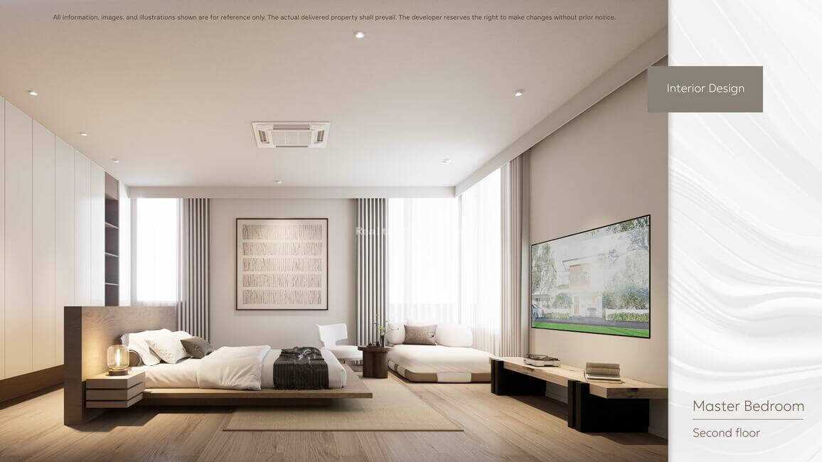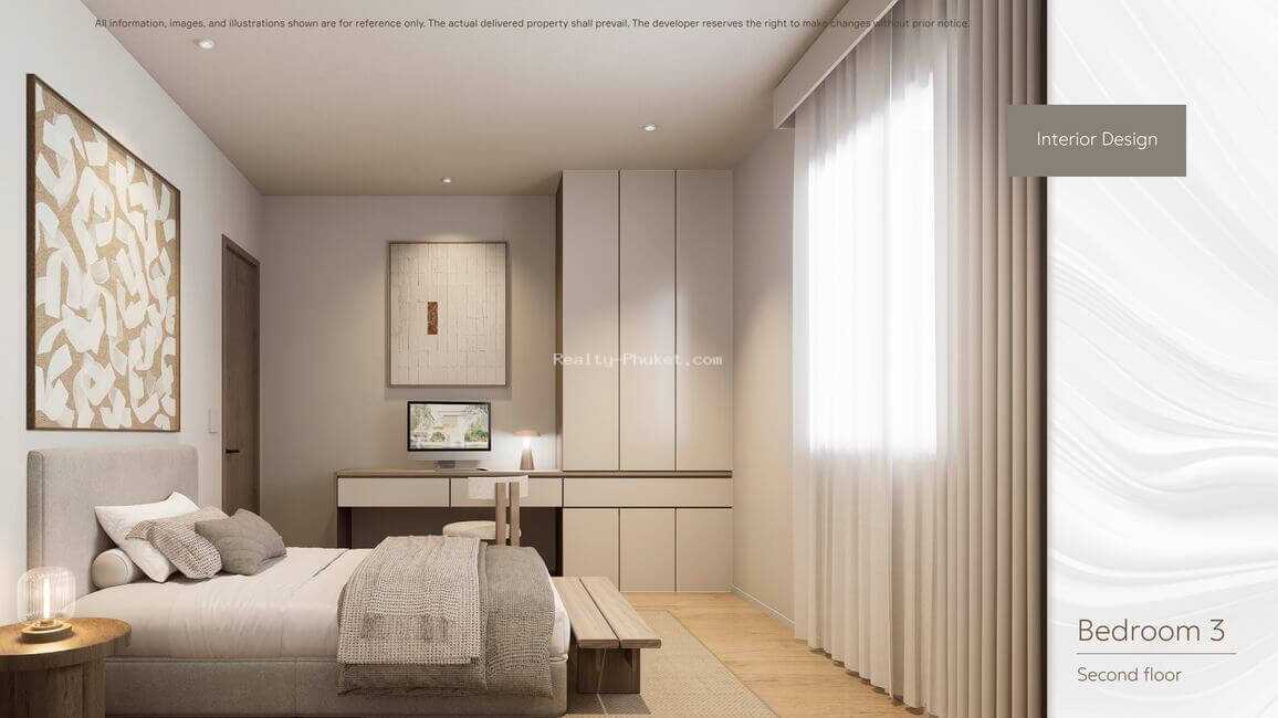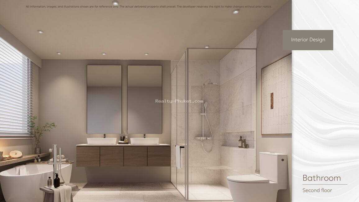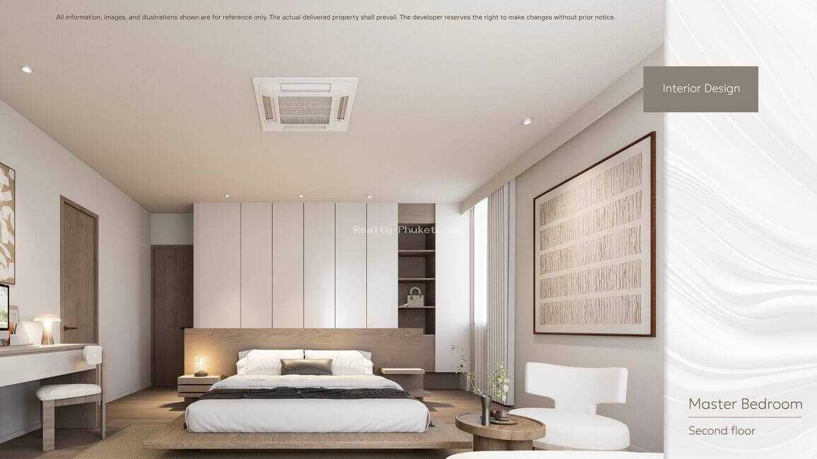 - Второй этаж включает мастер-спальню с ванной комнатой и балконом, две дополнительные спальни, кабинет для работы и гардеробную. Каждая вилла оснащена частным бассейном, садом и террасой.