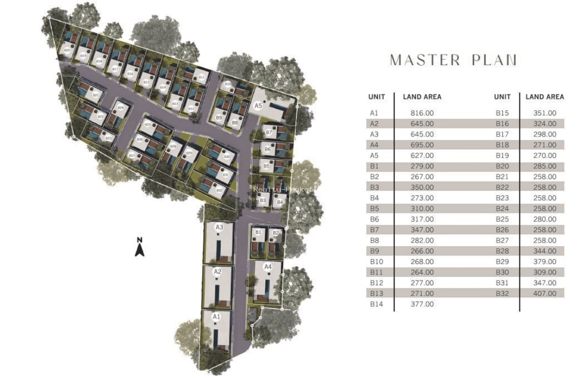 В комплексе предусмотрено 37 вилл, завершение строительства намечено на второй квартал 2026 года. Используются натуральные материалы, энергоэффективные системы и панорамные окна для максимального освещения. Планировки включают супер виллы типа А с пятью спальнями и пятью ванными, до 897 квадратных метров, а также стандартные виллы типа B с тремя спальнями и ванными, от 272 м2.